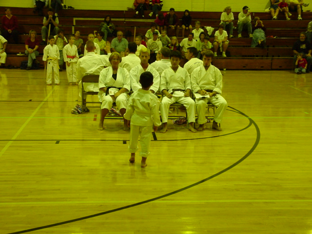 On September 29th, 2001, James and Alex participated in their first Karate tournament. They had been studying for about 2 months after getting introduced to the martial arts in summer camp. Dad has been studying as well – in his words, “I must keep ahead of the children so they don't beat me to a pulp and make me take them to Toys-R-Us!”
