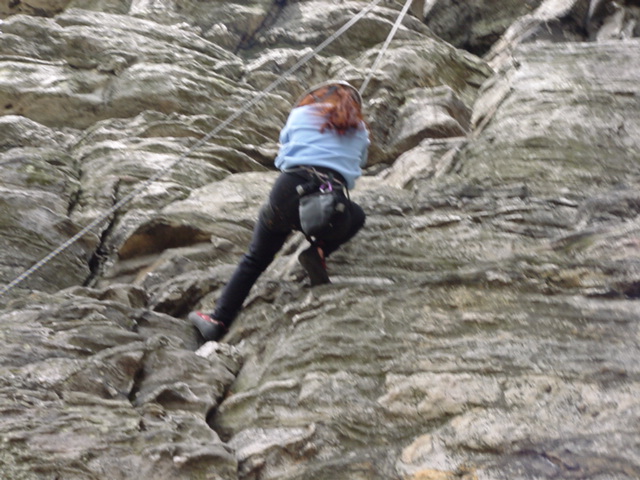 Once she'd done the route once, no more assistance was needed, and both kids spent the rest of the day blitzing the route, trying minor variations, practicing their “batman walking” down the face after each climb, and generally having fun.