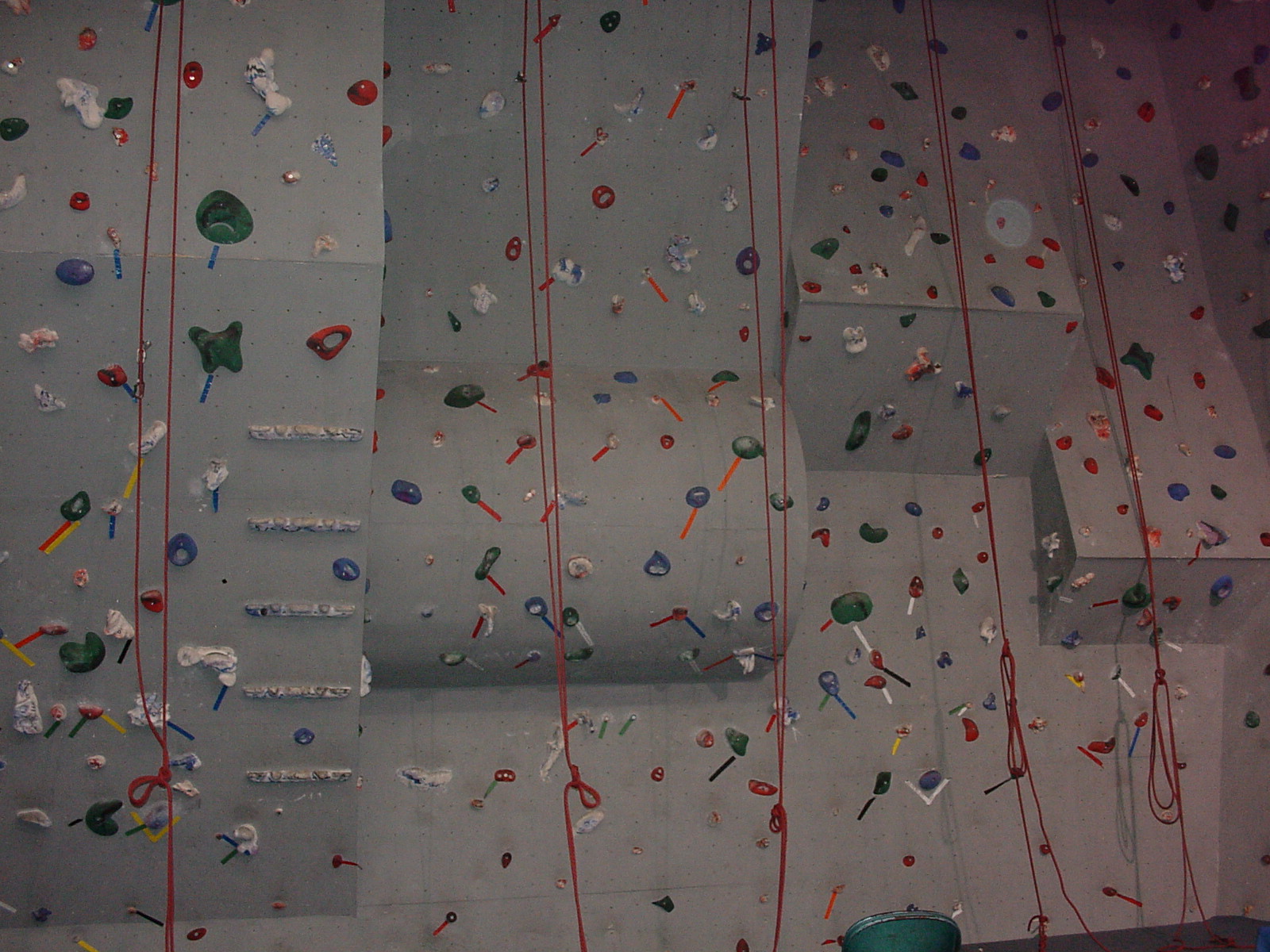 Returning after our outdoor expedition to the pleasures of indoor climing on what is affectionately referred to as “Mock Rock”, we returned to the Climbing Place, but this time stepped up matters a bit. Michael, the proprietor, was gracious enough to allow us to “set” a course up one of the walls. This involves hanging on belay whilst screwing fake rock holds into the wall with large bolts, and turns out to be very, very hard work.