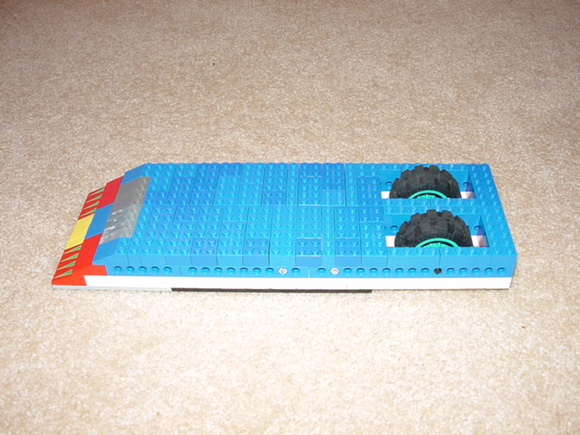 The concept is a simple wedge with a couple of evil design twists. It's a fairly long wedge with two drive wheels near the back. The final design will almost certainly be somewhat wider that the lego model we have made, these design parameters are very flexible at this point. And all edges will probably be sloped, not just the front one.