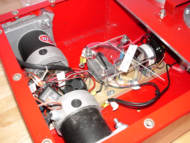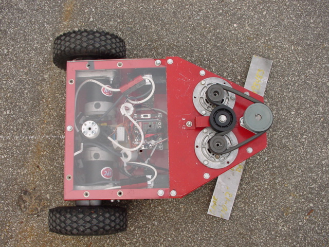 Other planned improvements: upgrading to BattlePacks and souping up the wiring; changing the weapon drive to vbelts (which can slip for shock absorption) and the weapon to a solid bar (currently, it's a flail); and perhaps even rebuilding the frame.