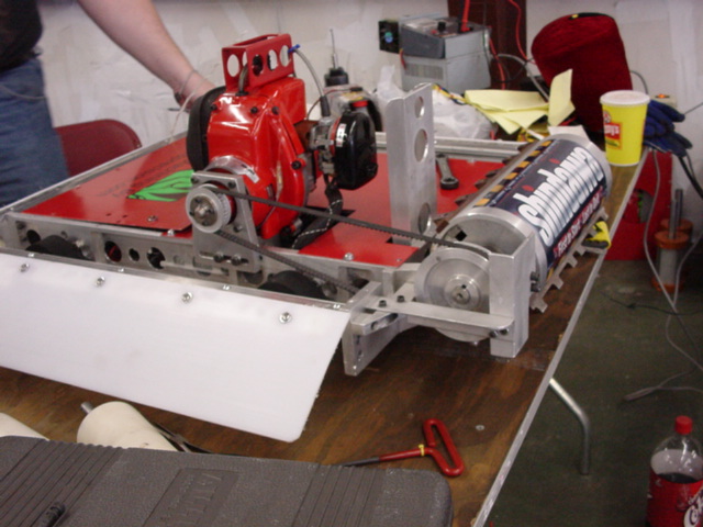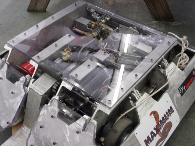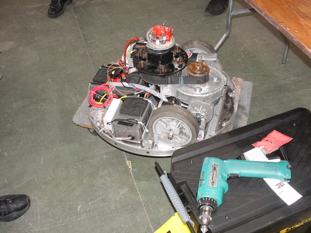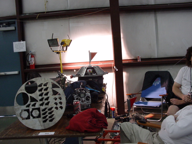 The kids had to head back to North Carolina for school, but I stayed an extra week in Florida to compete in Robocide 2003, a new competition. Unfortunately, once again I had weird radio problems with Red Menace and went 0-2. After much analysis I found that the battery pack powering the IFI radio in the robot would, if hit in a particular way, go intermittent and lock up the radio. !&#(@!#*@*!!!